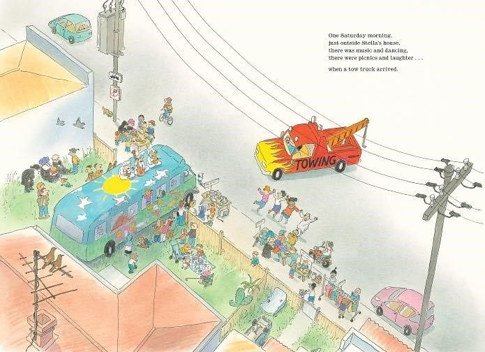《A bus called heaven》(有輛巴士叫天堂)這本童書是在描述一輛破舊廢棄公車,出現在澳洲常見獨門獨戶的老舊社區中,意外造成社區的改變。這輛廢棄公車停放一處車庫前空間,並且占用了部分人行道 (私領域與公領域的模糊地帶),這輛廢棄公車引起了社區中的孩子們的興趣,而開始使用這個有趣的空間,並慢慢動手改造,改造過程中,社區裡各個年齡層的居民都一同來參與。 漸漸地這條原本車速很快街道、人們很少互動的社區,因為這輛破舊的公車而產生了歸屬感,帶動了一個充滿多元種族融入的社區向新處。