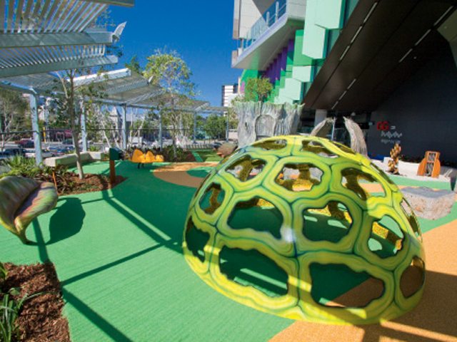 昆士蘭市中心南岸旁的奇倫托夫人兒童醫院(Lady Cilento Children’s Hospital),獲得2016年 澳洲景觀公會最佳公共景觀設計獎 (Award of excellence for civic landscape) ,從計畫到落成總共費時七年,設計團隊最主要的設計發想理念,就是想設計一間不像醫院的醫院,讓無論進入到這間醫院看診的病患或家屬,甚至是長期在醫院裡工作的醫療團隊人員,都能夠舒緩放鬆心情。