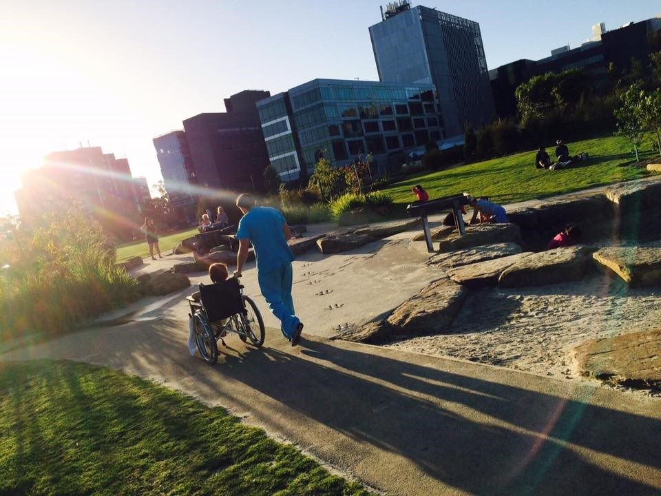澳洲各州的公立醫院開始打破傳統醫院規劃思維,在醫院旁整合著大型城市綠地公園系統,將醫院整合在公園綠地系統之中,室內外均有大量的綠色植栽,打破傳統冷冰冰的白色充滿消毒水味巨塔,轉身一變成為療癒性指數破百的公共建物,提供病患、家屬及醫護研究人員一處健康療育環境。
