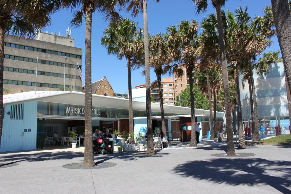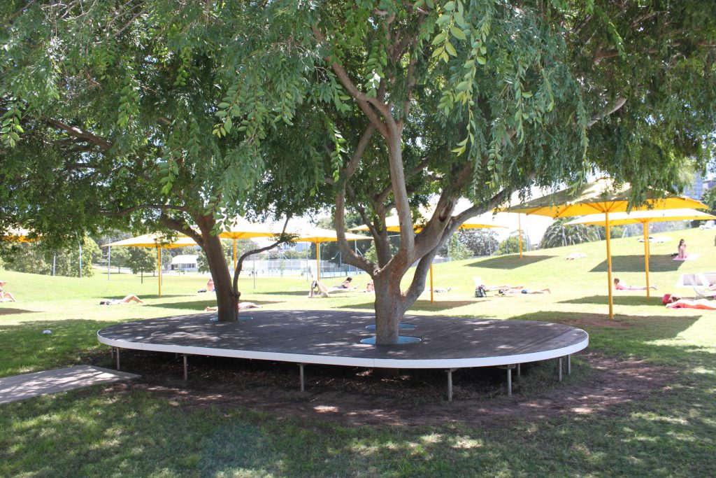 原本疲乏無力的老樹經過設計團隊細心的養護,如今又顯得生氣勃勃;原本空蕩停用許久的空間,如今在晴朗舒適的天氣裡,滿滿的周邊鄰近上班族或家庭使用人群。新的公園增設兩座籃球場與五座的網球場(使用與澳洲網球公開賽場地 Flinders Park 相同的 plexi-cushion 地坪),以及戶外燒烤區、休憩座椅、戶外健身區等,滿足民眾不同的需求。