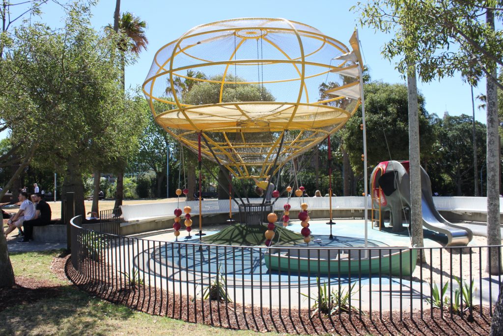 泳池畔為孩童設置的戲水區,亦結合色彩計畫,輕巧地長出大水桶,是呼應公園名稱,整體概念來自皇室的黃冠,呼應當時因紀念英女皇第二皇子 Prince Alfred 取名的公園,除了炎炎夏日的遮陰功能外,藍白為主色彩搭配彈性環狀地坪及柱狀噴水設施,更為整體游泳池增添空間趣味感。