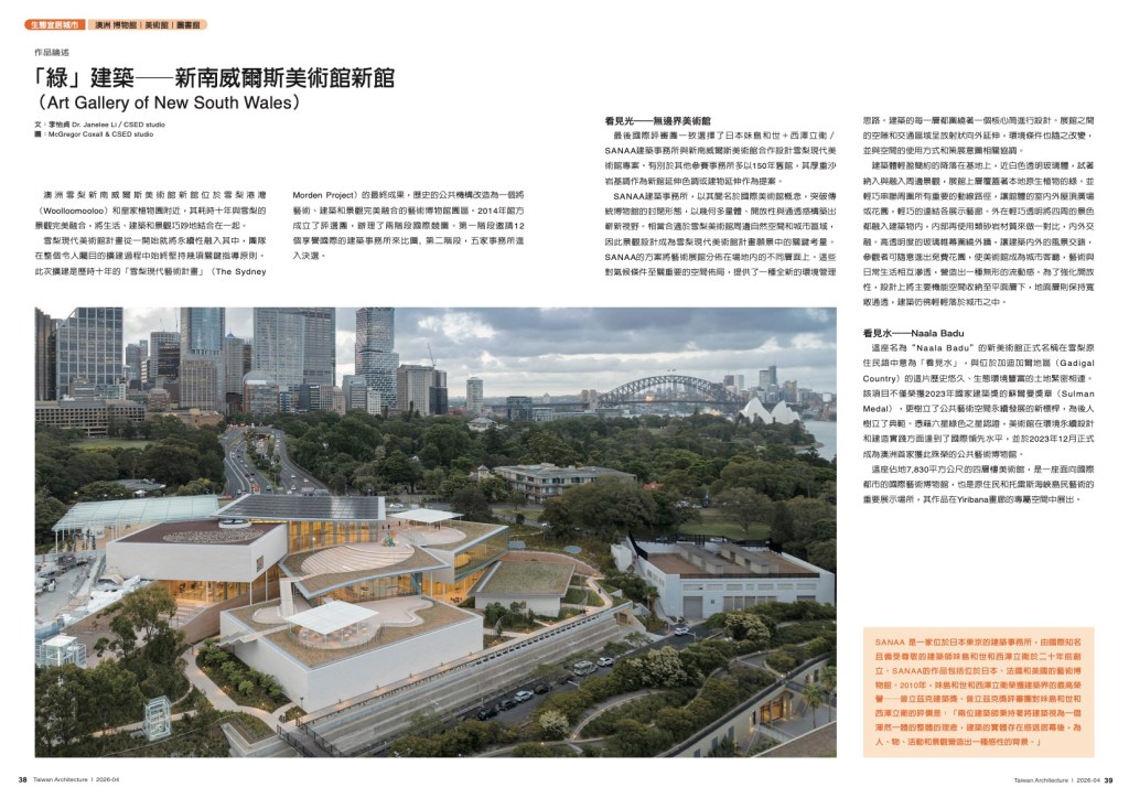 《生態「怡」居城市 澳洲 博物館|美術館|圖書館》 ta Taiwan Architecture Vol.367, APR 2026